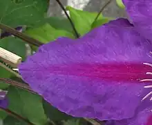 Les sépales de la clématite Anna Louise mesurent entre 6 et 8 cm de long. Ils sont ondulés et striés le long de la nervure centrale; ils se chevauchent légèrement. Cette clématite est particulièrement intéressante par son coloris.
