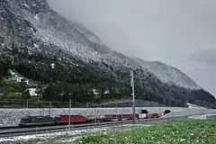 Les portails nord et sud du tunnel de base du Gothard un même jour d'avril. | ||
