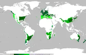 Une zone tempérée, définie d'un point de vue strictement géographique, regroupe les régions situées entre les tropiques (23°) et les cercles polaires (66°) par opposition aux zones polaires (glaciales) et tropicales (torrides)[2]. Par convention, dans une acception plus étroite, les régions tempérées peuvent être cantonnées entre le 40e et le 60e parallèle, en faisant ainsi abstraction des zones subtropicales et subpolaires[3].