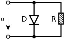 En 1950, Léon Brillouin décrivait un circuit électrique qui utilisait un redresseur (tel qu'une diode) comme analogue du cliquet[11]. L'idée était que la diode devait rectifier les fluctuations de courant thermique (le bruit Johnson) produites au sein de la résistance, générant ainsi un courant continu qui pourrait être utilisé pour effectuer du travail. Une analyse détaillée a démontré que les fluctuations thermiques à l'intérieur de la diode généraient une force électromotrice qui annulait la tension produite par les fluctuations de courant redressées. Ainsi, tout comme pour cas du cliquet brownien, le circuit ne produira aucune énergie utile si tous les composants sont en équilibre thermique (à la même température). Un courant continu ne pourra être produit que lorsque la diode est à une température inférieure à celle de la résistance[12].