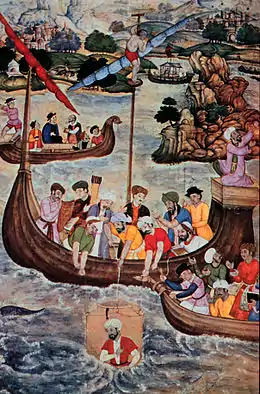 - Enluminure (vers 1470-1475) extraite du Roman d'Alexandre d'après Pseudo-Callisthène, Chantilly, musée Condé — Source RMN.