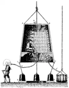 En 1616, l'inventeur et alchimiste Franz Kessler (en) dessine une première cloche de plongée en bois mais la durée d'immersion dépend de la quantité d'air contenu dans l'habitacle[4].
