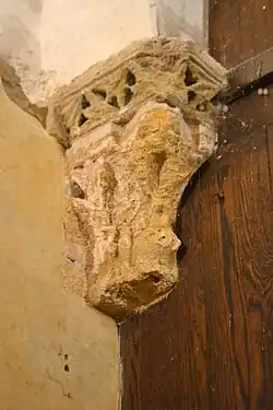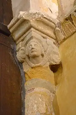 - Les abaques forment une corniche continue qui parcourt l'ensemble du mur oriental. Ils sont ornés d'un feuillage stylisé.