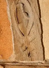 - Dans la partie droite de l'ébrasement, les corbeilles sont ornées de palmettes tandis qu'à gauche elles possèdent des crochets bourgeonnants entre lesquels se distinguent de petites fleurs avec leur tige.