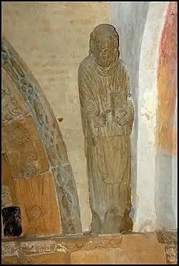 - La voussure intermédiaire représente onze prophètes de l'ancien testament et le roi David jouant de la harpe.