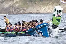 Virage de la traînière Bou Bizkaia lors d'une épreuve de la Ligue San Miguel.