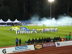 Match de l'Impact de Montréal en MLS le 12 mai 2012, 60 860 spectateurs au Stade olympique, record d'affluence pour un match de soccer au Canada[30].