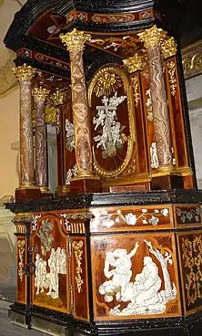 - Tabernacle orné de marqueterie en ivoire et nacre, réalisé en 1746 par l'ébéniste de la Cour de Turin Luigi Prinotto (1685 – 1780) ;