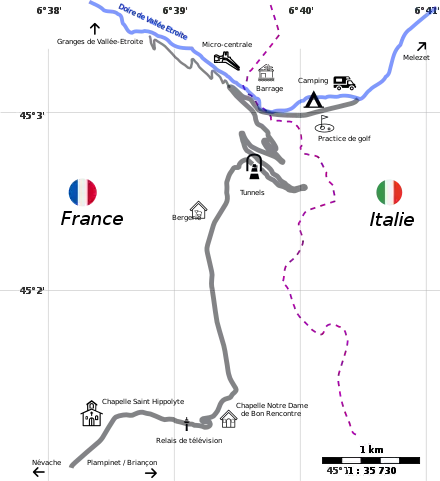 À la suite du traité de Paris de 1814, le col de l'Échelle marque la frontière entre la France et le royaume de Sardaigne devenu royaume d'Italie, et en 1947 l'annexion de la vallée Étroite déplace la frontière dans la vallée côté italien.