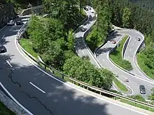 Le col de la Maloja (en romanche : pass dal Malögia) est un col de montagne routier des Alpes suisses, dans les Alpes rhétiques occidentales, situé à 1 815 mètres d'altitude[1] sur la commune de Bregaglia dans le canton des Grisons. Il sépare le val Bregaglia au sud-ouest de l'Engadine, la haute vallée de l'Inn, au nord-est. La route qui le traverse, ouverte en 1828 reliant Chiavenna en Italie à Silvaplana en Suisse, a une longueur de 43 kilomètres et une déclivité maximale de 9 %. Elle fait partie de la route principale 3[1].