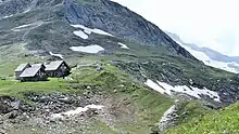 Vue depuis le nord-est du refuge de la Valette avec le col à droite. | ||||