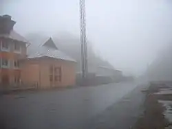 Une des auberges du col. La nuit, des ours et des loups carpatiques vérifient et trient le contenu des poubelles de la cuisine ; les touristes de passage prennent souvent les seconds pour des chiens errants[3].