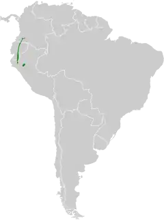 Ses habitats sont les forêts tropicales et subtropicales humides de hautes altitudes.