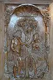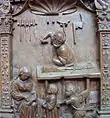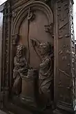 Les panneaux en bas-reliefs et les groupes en ronde bosse qui les couronnent représentent des scènes bibliques. Le style renaissance marque un retour à l'art antique, grec ou romain. On trouve un foisonnement de rinceaux et d'éléments végétaux.