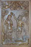 Sur sa base sont représentés des sujets profanes, classés au registre des monuments historiques depuis 1904.