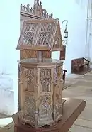 ![]() En bois finement sculpté, il servait à porter les grands livres de chants des chantres. |