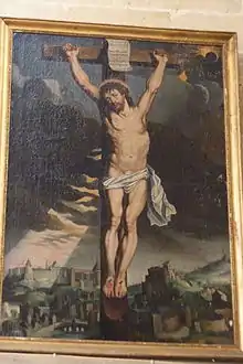 La Crucifixion est un tableau du début du XVIIe siècle représentant le crucifiement de Jésus de Nazareth. L'artiste, inconnu, a cependant remplacé la ville de Jérusalem à l'arrière-plan par celle de Bar-le-Duc, faisant ainsi apparaître le château des ducs de Bar avant son démantèlement en 1670[28]. Le 17 juin 1901, le tableau est classé au titre d'objet aux monuments historiques[31].