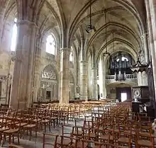 La présence d'un orgue de tribune dans l'église date du XVIIe siècle. De 1770 à 1771, Nicolas Dupont construit un nouvel instrument qui est fortement endommagé vingt-trois ans plus tard, pendant la Terreur, et seul subsiste le buffet positif. De 1809 à 1828, le facteur lorrain Jean-François Vautrin, disciple de Dupont, et Antoine François Brice Didelot, son apprenti, construisent un nouvel orgue, l'actuel, en réutilisant en partie l'ancien instrument[15],[9]. En 1892, Alexandre et Henri Jacquet séparent la console du reste de l'instrument[34].
