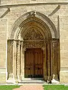 Les années 1180 voient la fin de la construction du portail occidental de l'église et de son tympan ainsi que de la tribune .