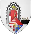 Blason de Gilles Albert Denis Doyen de la Collégiale d'Avesnes-sur-Helpe : D'azur au lion d'argent surmonté de trois abeilles d'or rangé en chef |