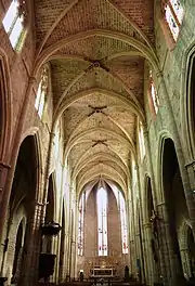 Elle présente une belle élévation intérieure, ainsi que des bas-côtés, chose rare dans le gothique méridional. Elle possède une grande rose en façade.