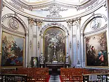 Dans la partie droite deux tableaux de Serin l' Investiture de Saint-Maurand et la Mort de Saint-Vaast provenant de l'ancien collège des bénédictins Anglais.