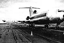 ![]() Le Boeing 727 impliqué dans l'accident (N278US), ici en décembre 1993, 3 ans après l'accident | ![]() Un Douglas DC-9 de Northwest Airlines similaire à celui impliqué | ||