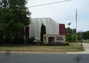 Salle Louis et caserne de pompiers avec château d'eau en arrière-plan