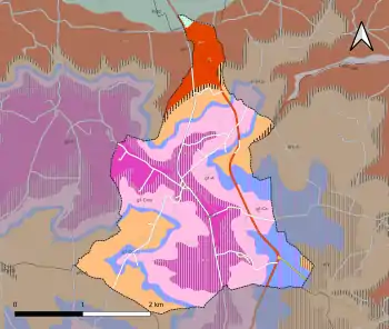La superficie cadastrale de la commune publiée par l'Insee, qui sert de référence dans toutes les statistiques, est de 7,03 km2[5],[11],[Note 2]. La superficie géographique, issue de la BD Topo, composante du Référentiel à grande échelle produit par l'IGN, est quant à elle de 7,06 km2[3].