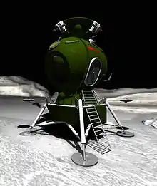 - La base LEK[6] (Lunar Exploration Complex) conçue par Valentin Glouchko (1974) pour trois cosmonautes, comprenant le Laboratorno-zhiloy modul' (LZhM) semi-permanent et le Laboroatorno-zavodskoy modul' (LZM) permanent, devant être opérationnelle en 1980 ;