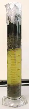 Après le repos, deux phases sont visibles, une solide et une liquide. Cette dernière ne doit pas être supérieur ni inférieur à 1 cm. Il faut donc enlever ou rajouter de l'eau en conséquence.