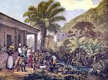 Le peintre allemand Johann Moritz Rugendas (1802-1858) effectua dans les années 1820 un voyage en Amérique latine, et notamment au Brésil, dont il ramena de nombreuses toiles dépeignant la vie dans les plantations et colonies agricoles.