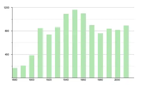 | 1950 | 1 161 | ▲ +6,51 % | |