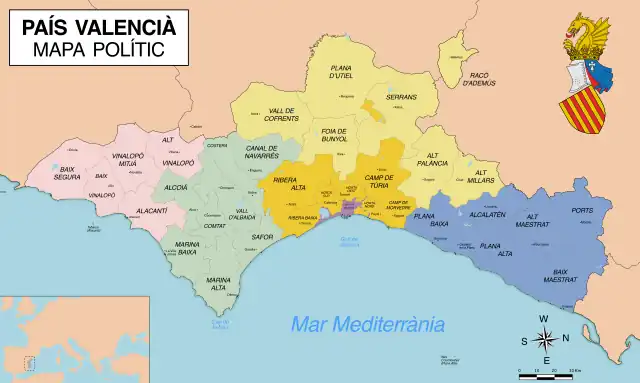 Cependant, durant la transition, qui se caractérisait à Valence par une grande crispation identitaire (voir Bataille de Valence), les secteurs blavéristes critiquèrent cette proposition en la qualifiant de pancataliste et l'accusant de transgresser les limites provinciales pour établir des frontières comarcales pensées pour une intégration dans les Pays catalans. Ceux-ci défendirent la division d’Emili Beüt, publiée dix ans auparavant par Lo Rat Penat (dont Beüt était président au moment de son élaboration), qu'ils opposèrent à celle de Soler. Paradoxalement, la version en réalité utilisée différait légèrement de l'original de 1934 qui transgressait également les limites provinciales (comme c'est le cas de la comarque de la Calderona [num. 15] ou de la Serrania de Alcoy [num. 31]).