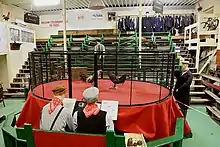 Elle consiste à mettre, dans une sorte de ring circulaire, deux coqs dont les ergots sont coupés et remplacés par des ergots en corne (plus longs et affûtés) ou en acier[16]. Les deux coqs sont présentés face à face et se battent, des paris sont pris sur le vainqueur[17],[18].