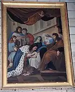 d'après Eustache Le Sueur | copie de l'Apparition de la Vierge, accompagnée de sainte Agnès, sainte Thècle, saint Pierre et saint Paul à saint Martin[17] | XIXe siècle | huile sur toile | église saint Joseph d'Angers |