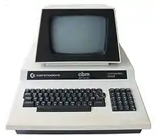 Pionnier en 1977, Commodore lança d'abord une machine intégrée à usage personnel, sous la dénomination de Commodore PET 2001. Ce Personal Electronic Transactor (ou PET, jeu de mots sur l'anglais pet qui signifie « animal de compagnie ») était conçu par Chuck Peddle comme un boîtier monobloc, incorporant clavier, écran de taille réduite et lecteur de cassettes, le premier micro-ordinateur prêt à fonctionner dès son branchement au secteur, un concept que reprendront plus tard, donc avec plus de puissance, d'autres machines comme l'Osborne et les portables, ou encore le premier Macintosh : cette machine monobloc et complète se différenciait donc de ses concurrents du moment comme l'Apple II et le TRS-80 qui nécessitaient un magnétophone externe alors que celui du PET 2001, intégré, se révélait particulièrement fiable.
