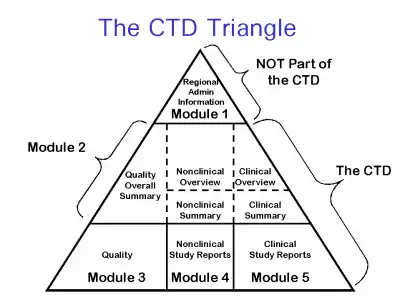 Le module 1 est administratif et ne fait pas vraiment partie du CTD car il est spécifique à chaque région (Europe, USA, ...).