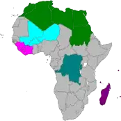 - Grande zone arabe de libre-échange (GAFTA) (comprend également la plupart des États du Moyen-Orient)