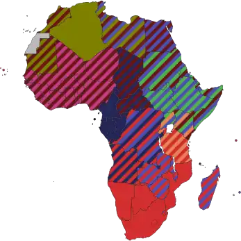 | CEMAC | Commun | UEMOA | WAMZ | Commun | SACU | Commun | ||||||