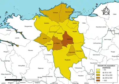 | Ploudaniel | 29179 | Ploudaniélois | 46,28 | 3 775 (2021) | 82 |