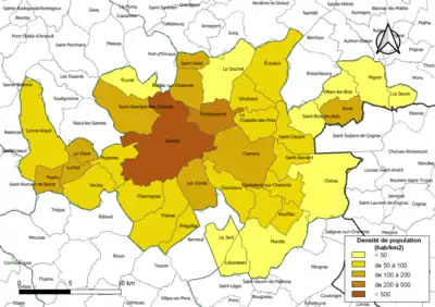 | Saint-Georges-des-Coteaux | 17336 | Saint-Georgiens | 19,23 | 2 810 (2021) | 146 |