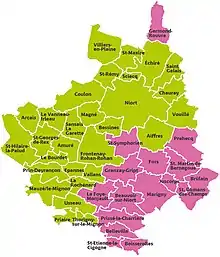 | Prin-Deyrançon | 79220 | Prinois | 16,12 | 598 (2021) | 37 |