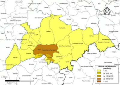 | Bessais-le-Fromental | 18029 | Bessaisiens | 25,75 | 296 (2021) | 11 |