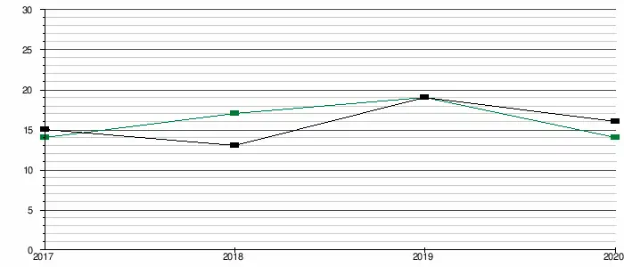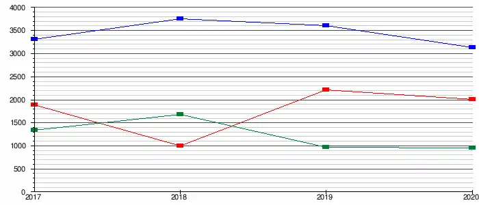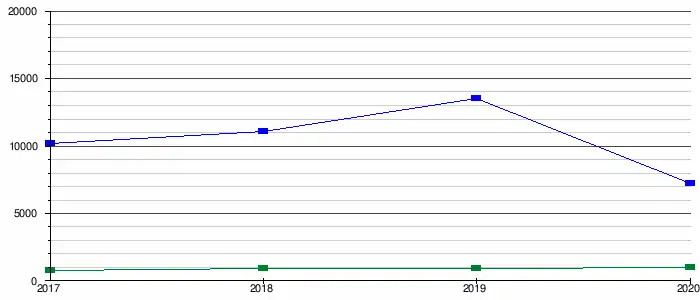 - la capacité d'autofinancement (CAF) pour une valeur de 6 199 000 €, soit 137 € par habitant. La capacité de désendettement est d'environ 2 années en 2020. Sur une période de 4 années, ce ratio est constant et faible (inférieur à 4 ans)
