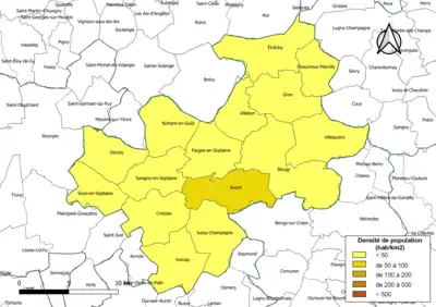 | Jussy-Champagne | 18119 | Jussy-Champenois | 27,3 | 205 (2021) | 7,5 |