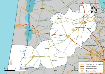 Située à l'ouest du département de la Gironde, la communauté de communes Médullienne regroupe 10 communes et présente une superficie de 636,3 km2[2].