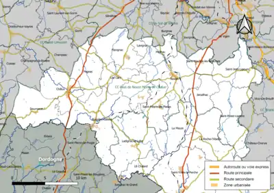 Elle est proche des pôles majeurs d'emplois et de services que sont l'agglomération de Limoges et les villes d'Aixe-sur-Vienne et Saint-Yrieix-la-Perche[5] et est desservie notamment par les RN 21 (Limoges – Périgueux) et RD 704 (Limoges – St-Yrieix-la-Perche), tout en étant aisméent accessible par l'autoroute A20. Son territoire, traversé par les lignes du réseau TER Nouvelle-Aquitaine Limoges – Périgueux et Limoges-Brive, dispose des gares de Nexon, la plus fréquentée du sud du département, Lafarge et Bussière-Galant. Cinq lignes d'autocars desservent le territoire, mais, organisées en étoile à partir de Limoges, elles ne permettent pas d’assurer les liaisons transversales au sein du territoire[6].