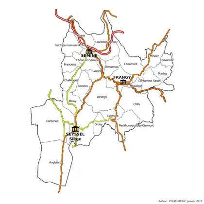 | Seyssel | 01407 | Seysselans | 2,4 | 1 001 (2021) | 417 |
