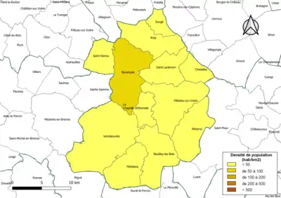 | Buzançais | 36031 | Buzançéens | 58,64 | 4 504 (2021) | 77 |